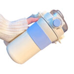 1、Insulated Cup: Keep your drinks at the perfect temperature with this stainless steel insulated cup. It is suitable for both hot and cold beverages, making it perfect for all seasons. 2、Portable Design: With its handle and strap design, this insulated cup is portable and easy to carry around. It fits comfortably in your hand and can be easily stored in your bag or backpack. 3、With Straw: Insulated water cups with foldable straw tubes are easy to use and enjoy your favorite drinks without worrying about spills or leaks. 4、Large Capacity: With a capacity of 635ml, this insulated cup can hold a generous amount of liquid, perfect for staying hydrated throughout the day. It is ideal for work, school, or outdoor activities. 5、Durable Construction: Made with stainless steel and other safe materials, this insulated cup is built to last. It is resistant to rust, corrosion, and odors, ensuring long lasting use.